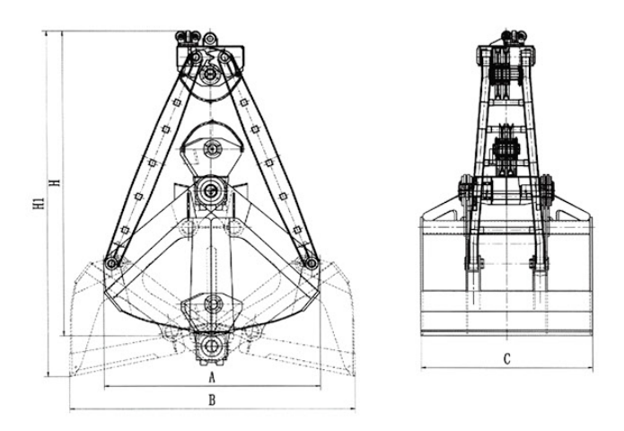 雙繩抓斗適用于有雙起升裝置結(jié)構(gòu)(單根繩)的各類起重機,多使用于港口、碼頭、建筑路橋等行業(yè)。根據(jù)物料特性可配用輕型、中型、重型、超重型。適用抓取各類松散堆積物。