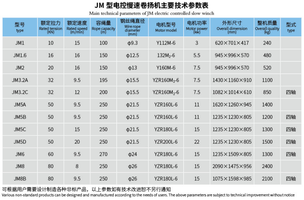 JM系列為齒輪減速機(jī)傳動(dòng)卷揚(yáng)機(jī)。主要用于卷揚(yáng)、拉卸、拖拽重物。如各種大中型砼、鋼結(jié)構(gòu)及機(jī)械設(shè)備的安裝和拆卸。